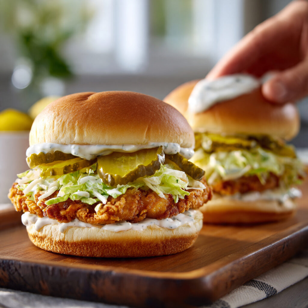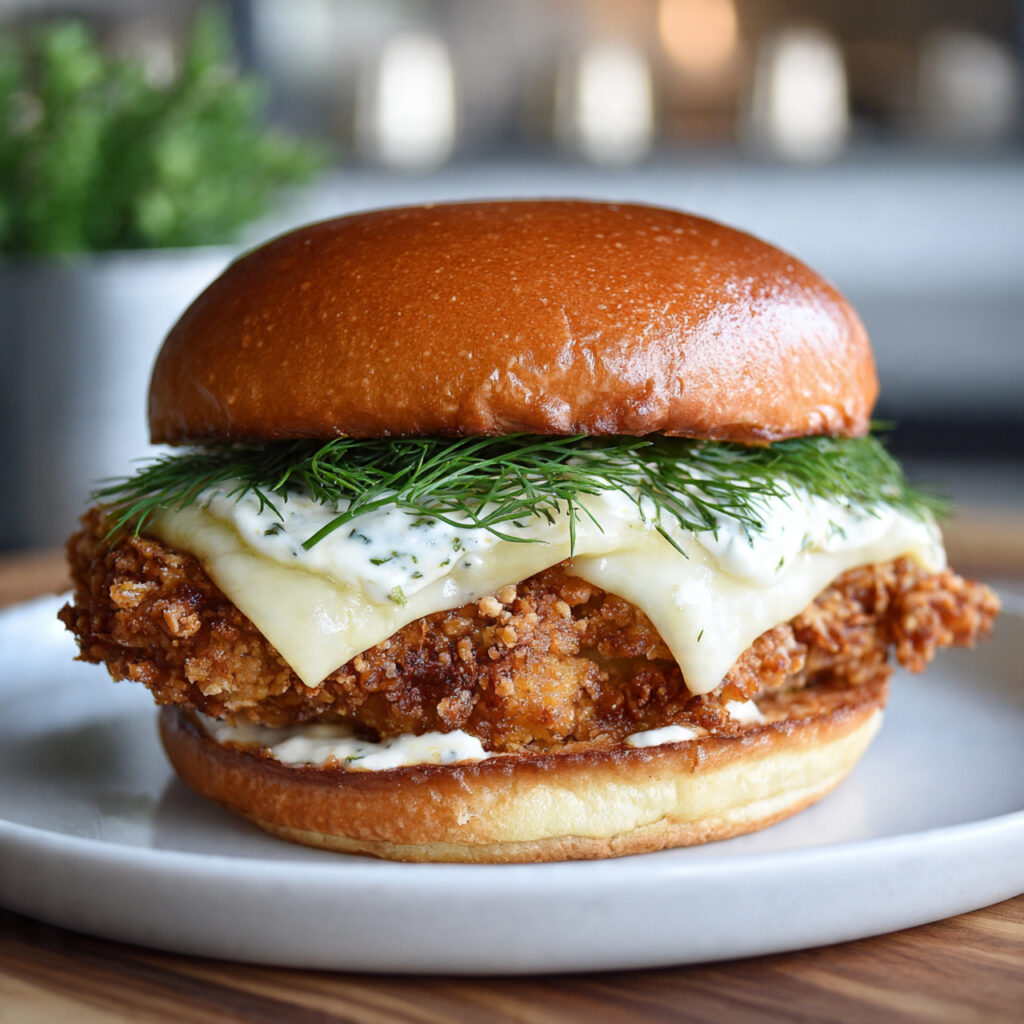 This crispy chicken sandwich is crunchy, juicy, and packed with flavor. It’s easy to make, customizable, and tastes even better than takeout. Plus, the dill adds a unique twist that makes every bite refreshing and delicious.