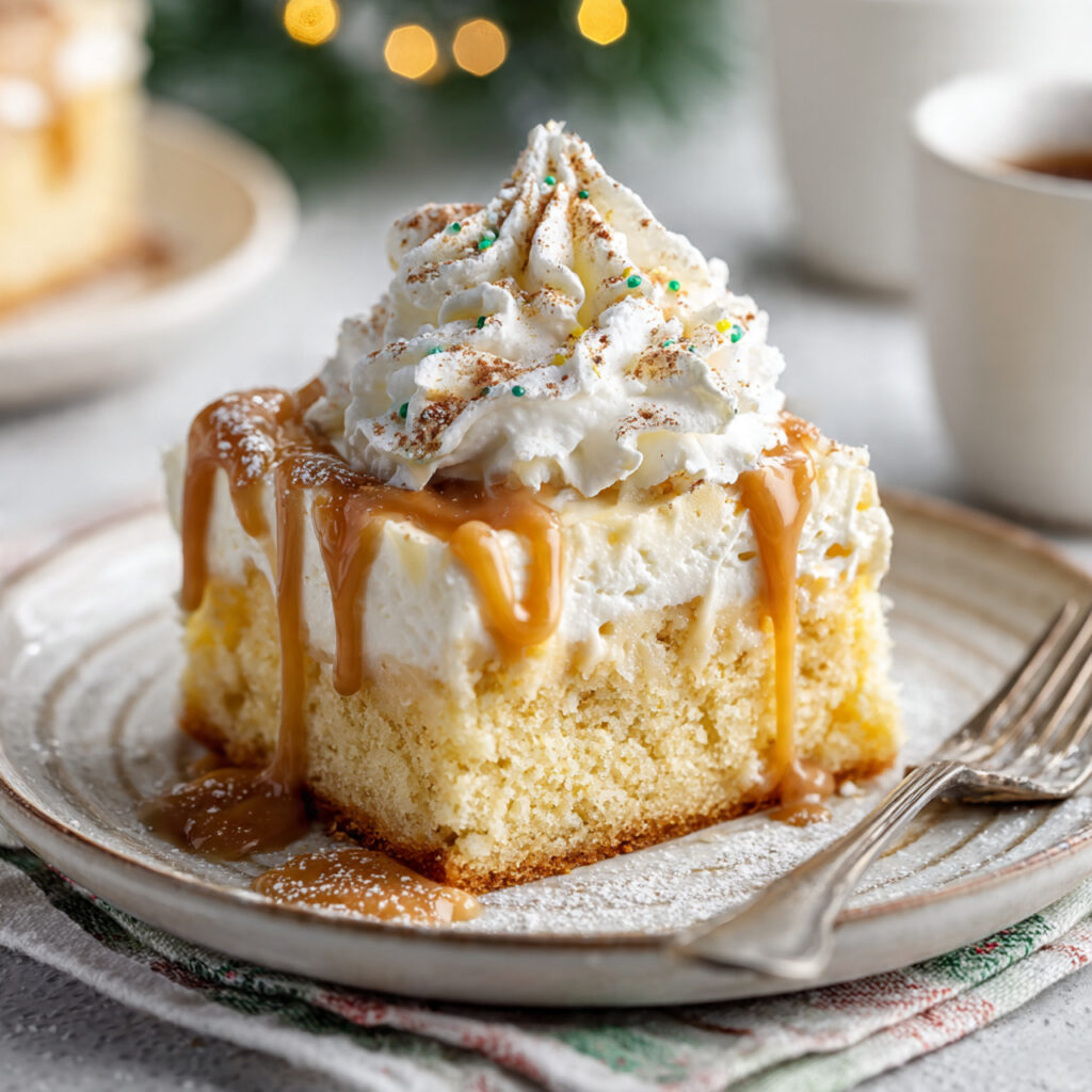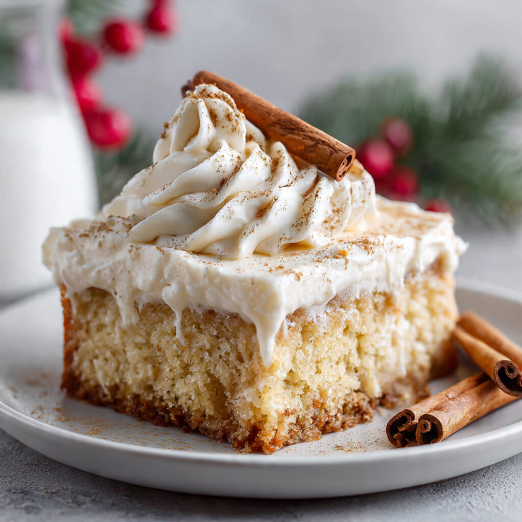 A spice cake base adds extra warmth and pairs beautifully with eggnog flavors. For something more indulgent, try adding a caramel drizzle on top.