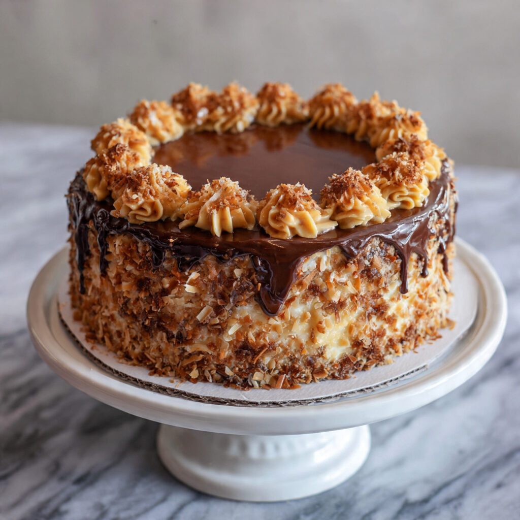 Have you ever tasted a cake so rich, so perfectly layered, that you just couldn’t forget it? That’s exactly how I felt the first time I baked this German Chocolate Cake. I still remember standing in my kitchen, watching that glossy coconut-pecan frosting come together—it felt like magic.