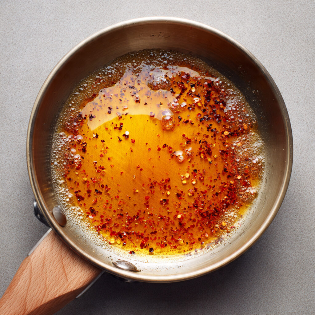 In a small saucepan, heat the honey and red pepper flakes over low heat for about 5 minutes. Remove from heat and stir in apple cider vinegar for balance.