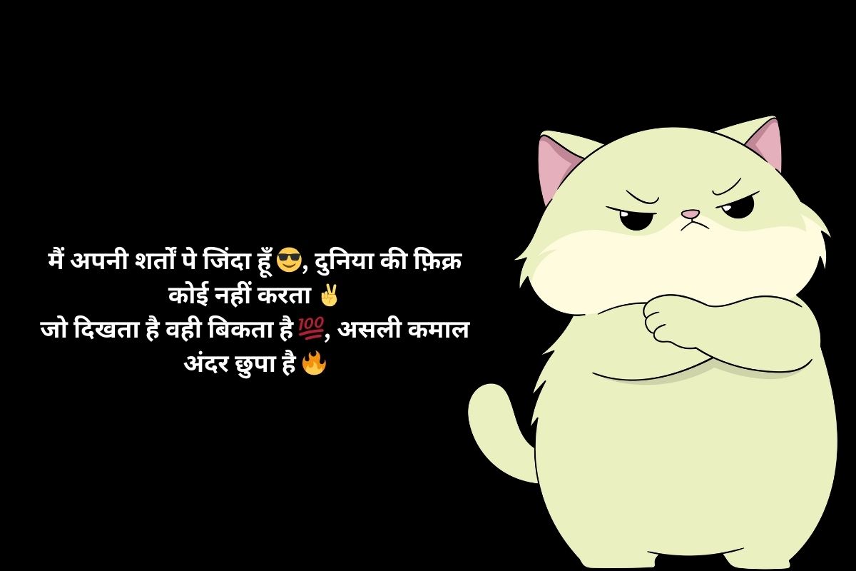 Killer Attitude Shayari: Hello readers, मैं आज आपके लिए लेकर आया हूँ 100+ बेस्ट Killer Attitude Shayari हिंदी में। शायरी हमारे दिल की भावनाओं को व्यक्त करने का सबसे बेहतरीन तरीका है। मैं यह लिख रहा हूँ ताकि आप अपनी इंस्टाग्राम, फेसबुक और व्हाट्सएप प्रोफाइल पर अपने Attitude को दिखा सकें। इस कलेक्शन में आपको स्टाइलिश, दमदार और थोड़ी मस्ती भरी शायरी मिलेगी। हर शायरी को खास तरीके से चुना गया है ताकि आपकी व्यक्तित्व और Confidence को अच्छे से दर्शाया जा सके। आप चाहें तो इसे अपने दोस्तों के साथ शेयर कर सकते हैं या अपने सोशल मीडिया प्रोफाइल में इस्तेमाल कर सकते हैं। मैं आशा करता हूँ कि यह Killer Attitude Shayari आपको पसंद आएगी और आपके Attitude को और भी प्रभावशाली बनाएगी। यह संग्रह आपके व्यक्तित्व और अंदाज को और भी खास बनाने में मदद करेगा।